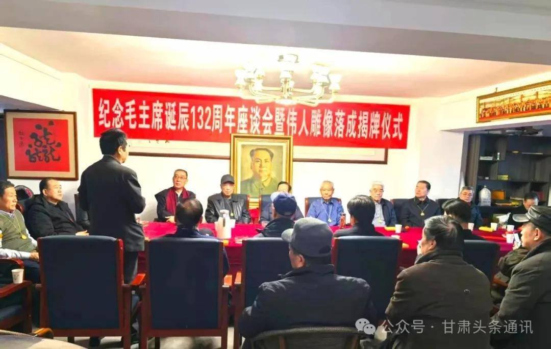 12月19日,纪念毛泽东同志诞辰132周年座谈会暨伟人雕像揭牌仪式在甘肃洮砚开发公司成德非物质文化传播馆举行。省人大常委会原副主任程有清,省政府原副秘书长于忠正等老领导及多位书画家共同出席本次活动。