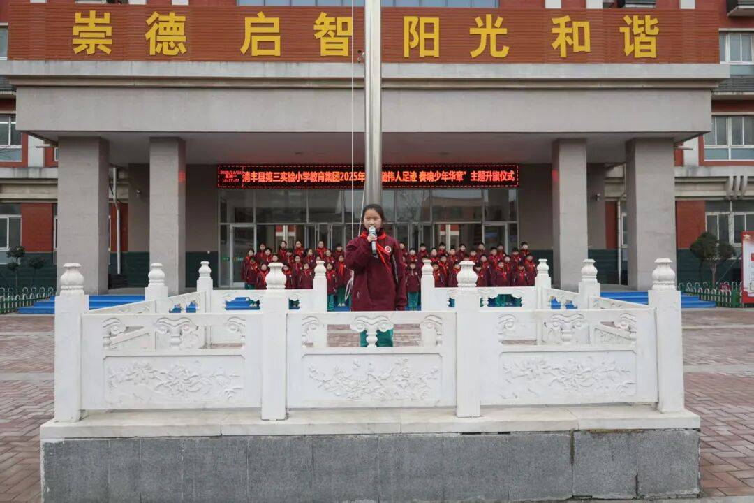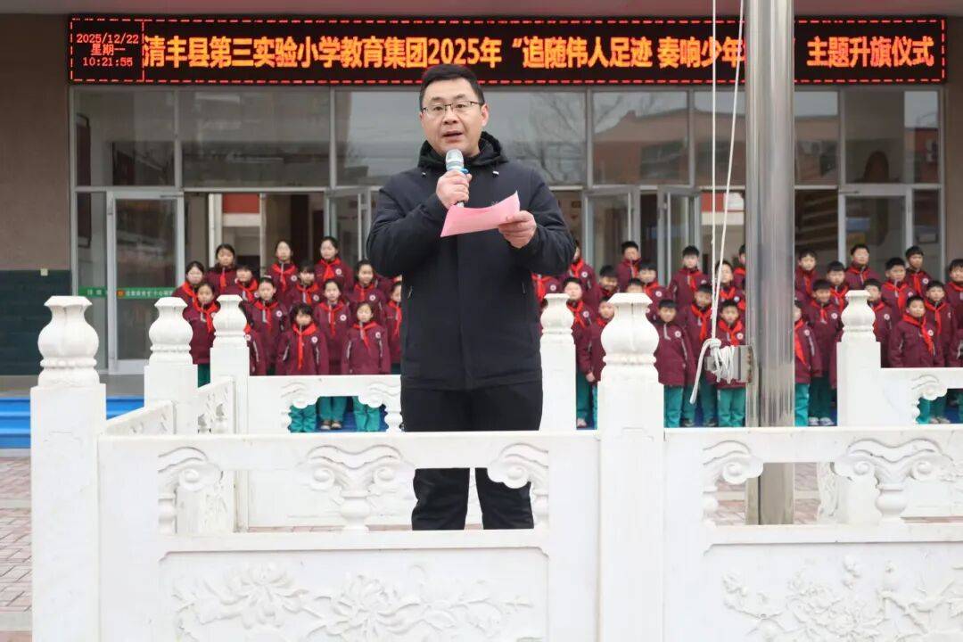 风展红旗,少年意气正扬;薪火相传,精神永续华章。这场主题升旗仪式,既是一次跨越时空的精神对话,更是一堂浸润心灵的红色启蒙课。从猎猎国旗中,读懂先辈的赤胆担当;从铿锵誓言里,看见少年的蓬勃力量。愿清丰县第三实验小学教育集团的学子们,以伟人为帆,以信仰为桨,在追梦航程中乘风破浪、奋勇争先,以今朝少年的凌云之志,续写明日盛世的璀璨篇章!