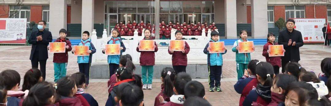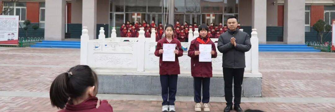 濮阳市第八届少儿文化艺术大赛、创新知识能力大赛的奖项与流动红旗颁发,为这场仪式增色添彩。获奖班级代表怀揣集体荣光,从校领导手中接过证书与鲜艳的流动红旗。猎猎旌旗漫卷,既彰显着班级的团结与少年的热忱,更寄托着学校的殷殷期许:愿少年们传承伟人精神,将爱国之志融入日常点滴,以拼搏为帆、初心为舵,做追光而行、向阳生长的新时代少年。