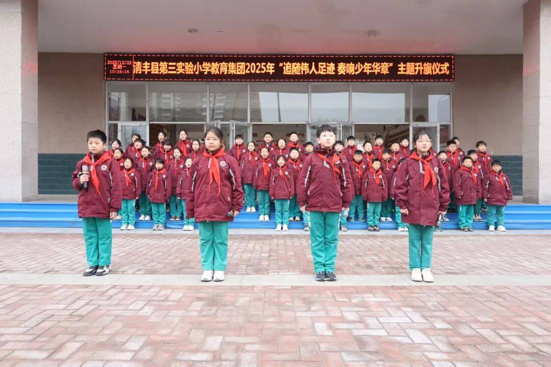 值毛泽东同志诞辰132周年之际,清丰县第三实验小学教育集团举行“追随伟人足迹 奏响少年华章”主题升旗仪式。我们追思伟人的不朽功绩,感悟革命先辈闯过万难的从容坚韧,读懂共产党人走完长征的信仰豪情。愿全体师生将红色火种深埋心底,把伟人精神融入每日的读书与前行,以少年的纯粹守护信仰,以向上的姿态奔赴远方,让时代的期许在少年的成长中赓续不绝。