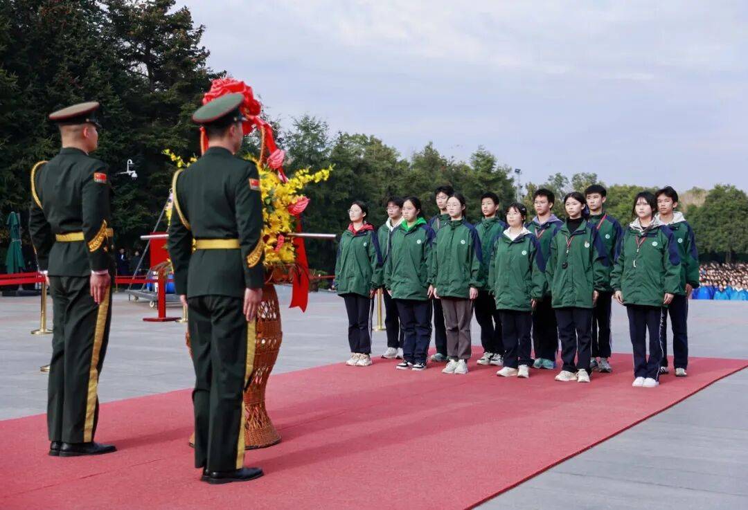 ▲ 恒雅高级中学 “雷小锋” 代表向毛泽东铜像敬献花篮
