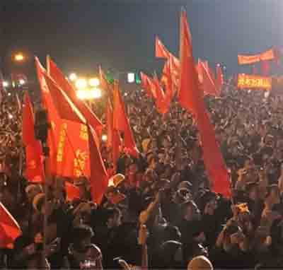 昨夜的韶山广场是一片欢腾的海洋,来自全国各地数十万热爱毛主席的红友汇集在这里,表达了亿万人民对开国领袖的无比敬爱之情。武汉红友作为一支热爱毛主席的队伍,举着武汉工农兵和武汉红歌会的旗帜步入会场,载歌载舞,全国人民一起大联欢,他们的旗帜举得最高,他们的横幅别具一格,由新四军老战士古正华同志题名的“毛泽东这把刀子不能丢”的响亮口号,闪亮登场。