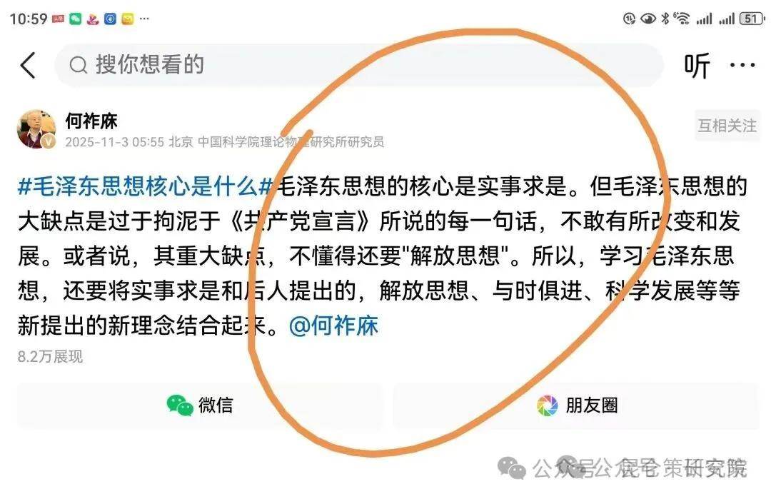 让我们倍感痛心的是,这样一些明显带有极端政治倾向的错误的东西,居然能够发出来,说明我们的某些机构,有他们的同道者,一有机会,这样一些人便可以兴风作浪。便可以用极端语言歪曲历史事实,丑化歪曲毛泽东思想的基本内容,甚至不惜与党的历史的定论唱反调。这些人,不管他位高权重,还是有什么名望,还是资格多老,都必将遭到广大人民的唾弃。反毛民必恨,必将成为历史垃圾,也必然与人民为敌,这是当下不可回避的客观现实。不管你以什么形式,耍什么花招,都将遭到广大人民群众的愤怒谴责和无情唾弃。
