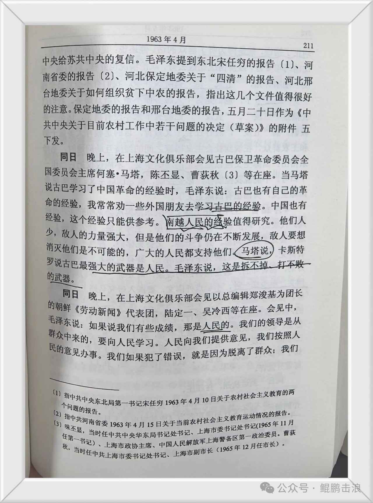 1.马塔说,卡斯特罗说古巴最强大的武器是人民。毛主席说,这是拆不掉,打不败的武器。